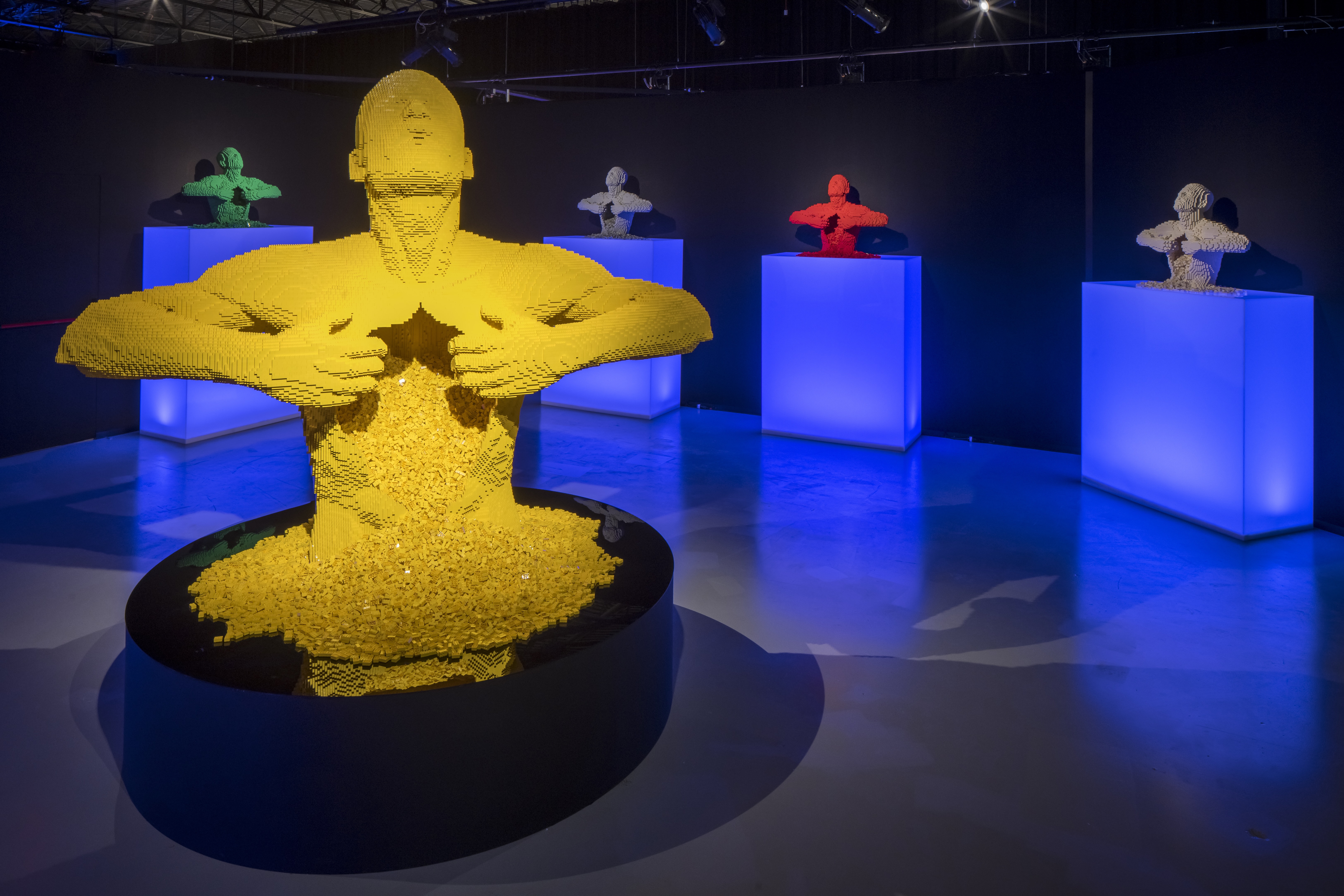 Popkultur-ikoner: Den berømte gule figur Yellow, der åbner sit bryst for at afsløre tusindvis af klodser.